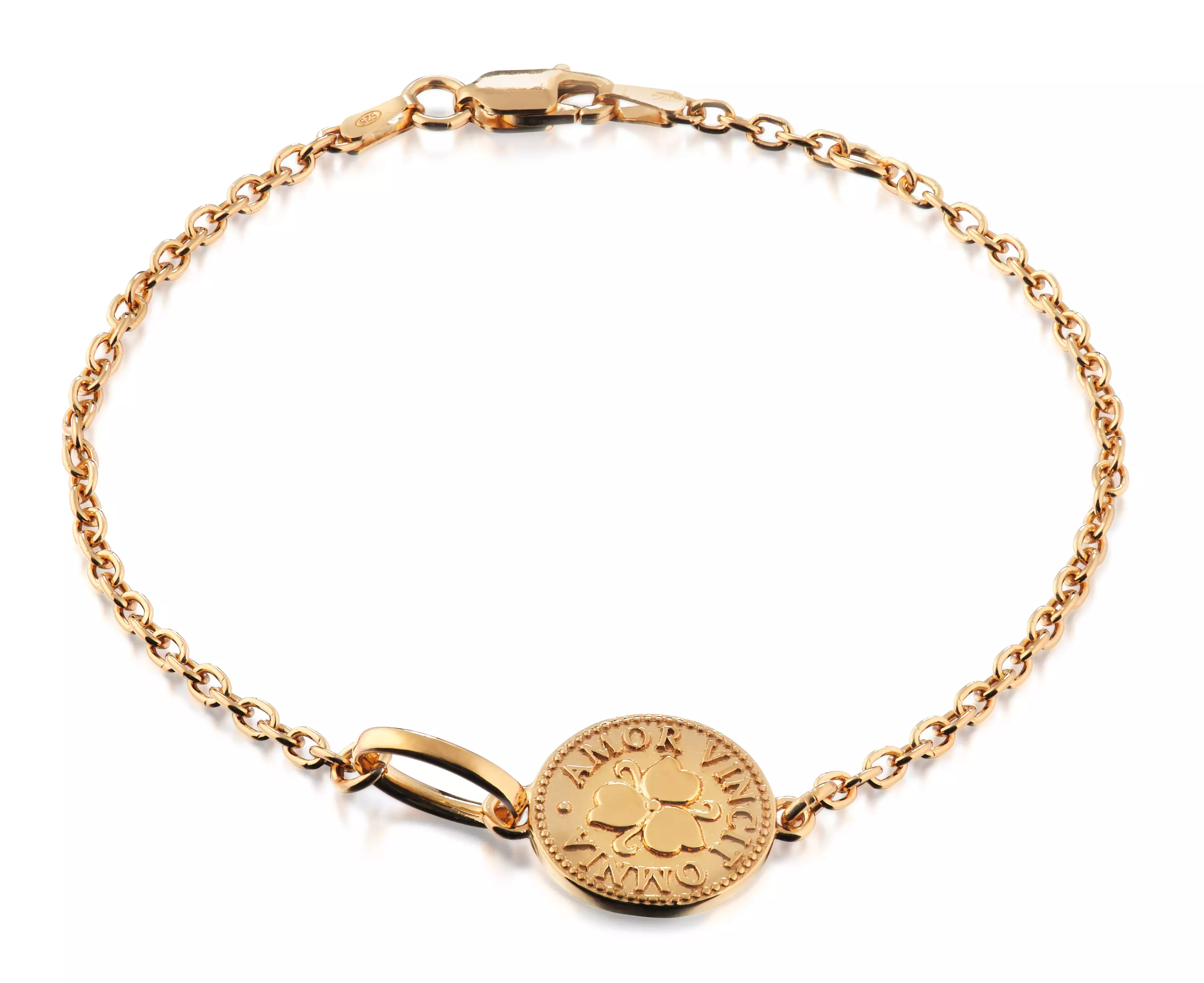 Rannekoru on valmistettu 100-prosenttisesti kierrätetystä hopeasta, joka on keltakullattu lämpimän sävyiseksi. Kolikkoamuletin koko on 27 x 14 mm, ja ketjun pituus on säädettävissä 18 cm:stä 19,5 cm:iin, mikä mahdollistaa korun mukauttamisen eri ranteisiin sopivaksi.
