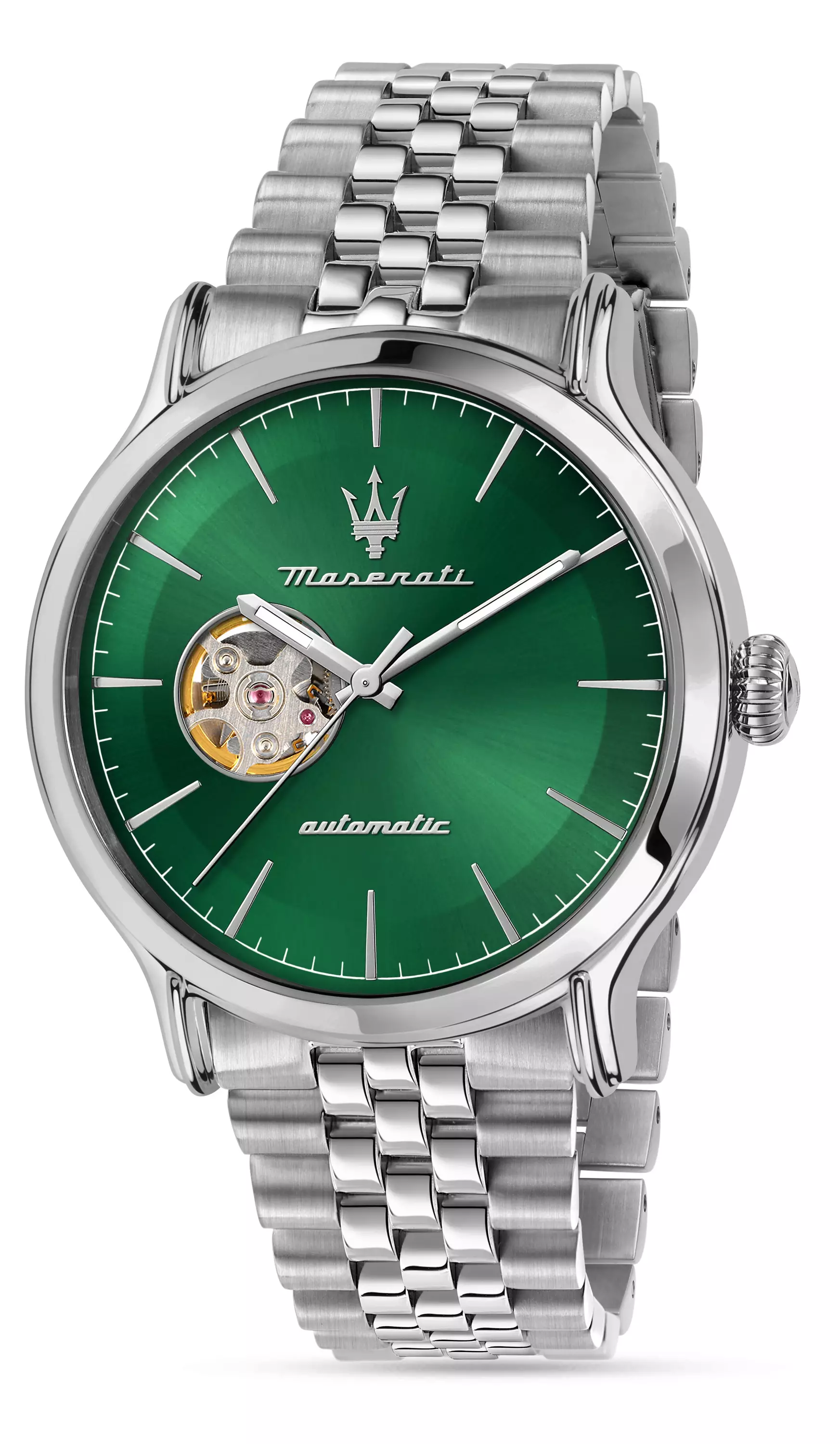 Maserati Successo Automatic R8823118019 Elegantti urheilullinen yhdistelmä hopeanharmaata terästä ja vihreää kellotaulua. Tyylikäs Epoca-kokoelmaan kuuluva miesten automaattikello, jossa... Lue lisää