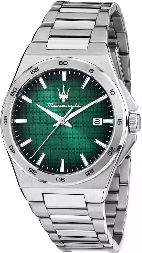 Tuo ranteeseesi italialaisen moottoriurheilun henki: Maseratin Velocità Slim R8853153003 yhdistää tyylikkään muodon, huolellisen viimeistelyn ja käytännölliset ominaisuudet. Runko on valmistettu kiillotetusta ruostumattomasta teräksestä, halkaisijaltaan 40 mm — riittävästi tilaa kellotaululle mutta säilyttäen sopivan sirouden. Taulun vihreä sävy korostaa hopeisia osoittimia ja tuntuu herättävän katseen, mutta ilman liiallista bling-vaikutelmaa.