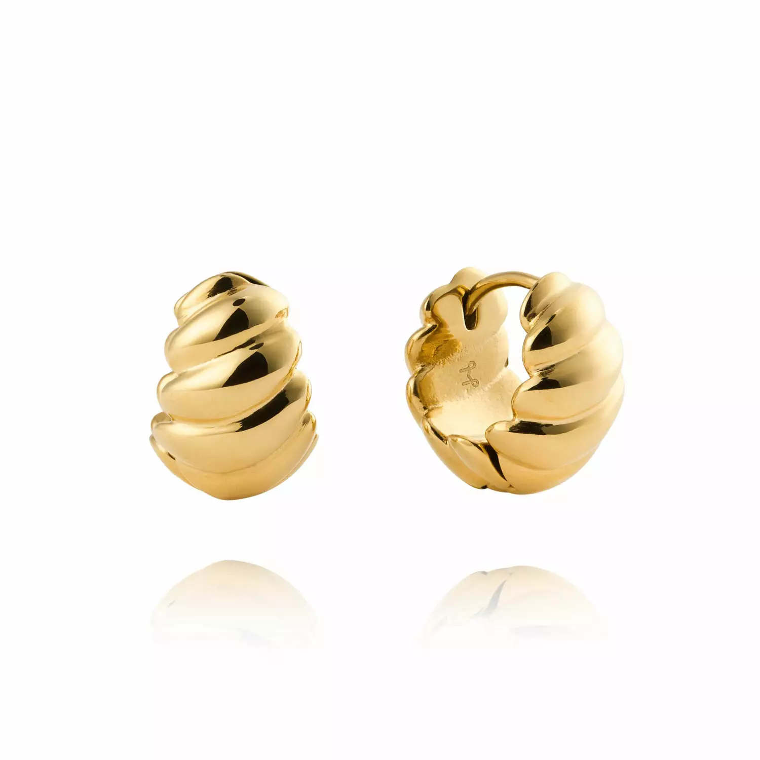 Nämä keskikokoiset kullatut korvakorut hurmaavat pehmeän sileällä ja luonnollisen pelkistetyllä muotoilullaan, joka tekee niistä ajattoman elegantin valinnan. Hienovaraisesti kaartuva muoto ja korkeakiiltoinen pinta heijastavat valoa kauniisti ja luovat modernin, lämpimän ilmeen, joka sopii täydellisesti niin arjen minimalistisiin kokonaisuuksiin kuin iltatyylin viimeistelyyn.