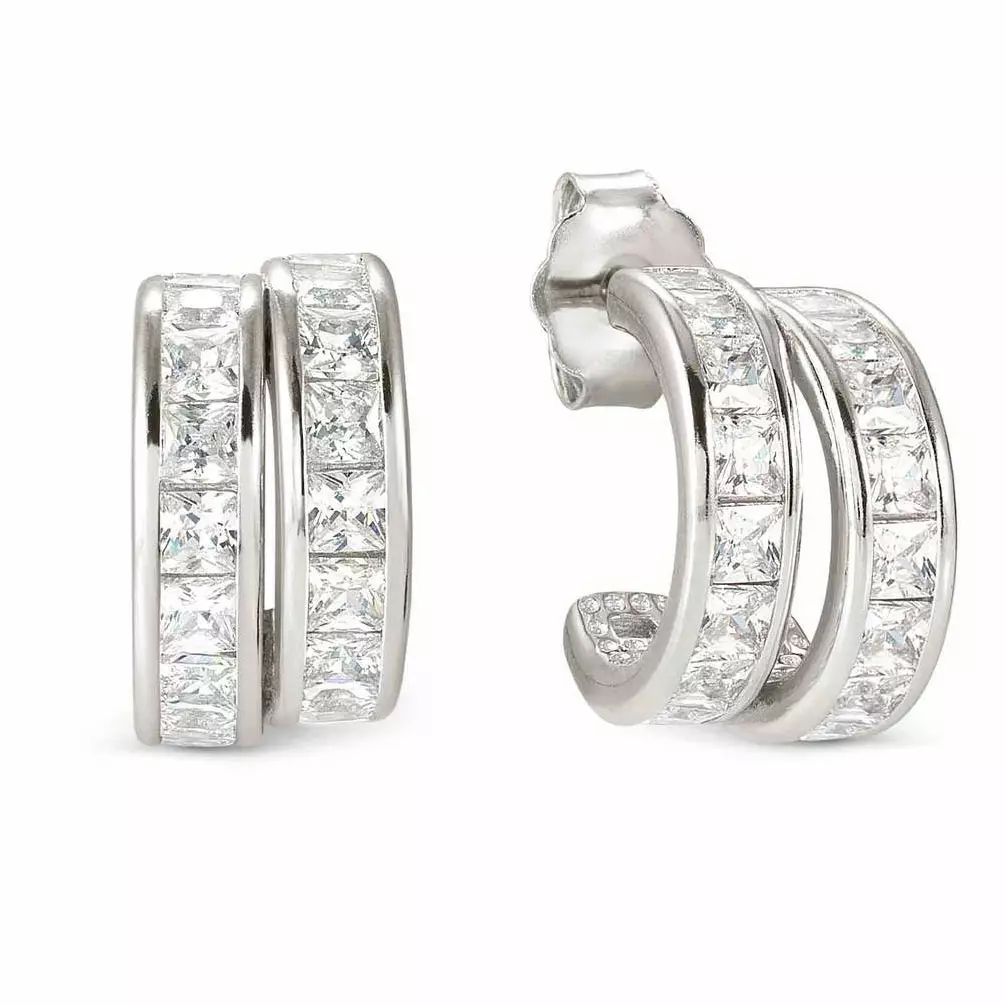 Nosta tyylisi uudelle tasolle DayToNight-korvakoruilla, joissa säihke ja moderni muotoilu kohtaavat. Avoimen rengasmuotoiset korvakorut on valmistettu sterling-hopeasta ja niitä koristavat kaksiriviset, kanavaistutuksella kiinnitetyt kirkkaat, neliönmuotoiset zirkonit. Lopputuloksena on näyttävä ja valoa kauniisti heijastava kokonaisuus.