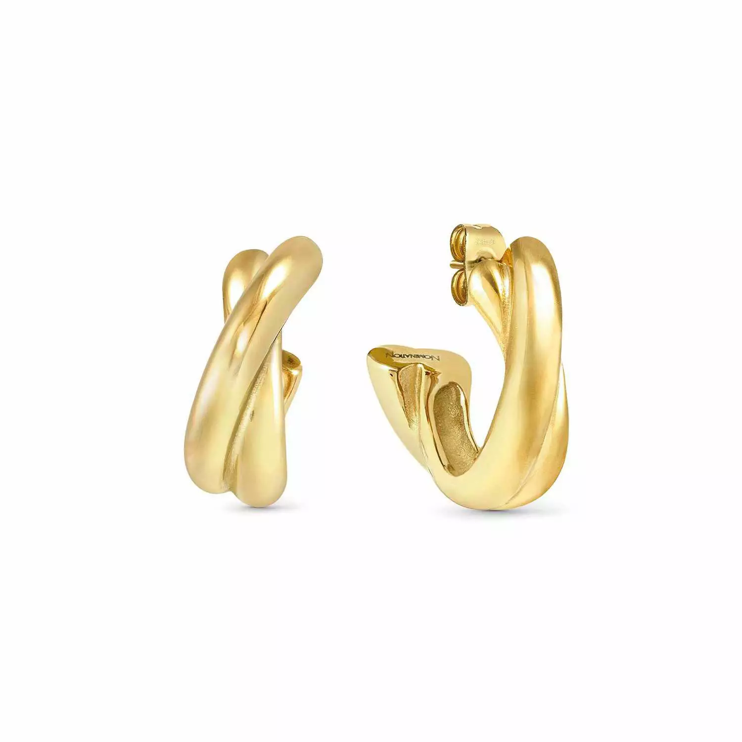 Nämä kullatusta ruostumattomasta teräksestä valmistetut crisscross-korvakorut hurmaavat muodollaan. Kierteinen, risteävä muotoilu tekee niistä näyttävät ja persoonalliset – täydellinen valinta niin arkeen kuin juhlaan. Nämä kaikkea muuta kuin perusrenkaat heijastavat kauniisti valoa ja viimeistelevät lookisi hienostuneella mutta vangitsevalla tavalla.