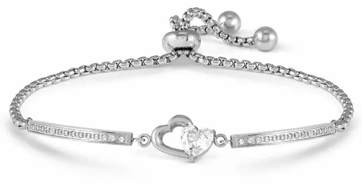 Rannekoru on valmistettu ruostumattomasta teräksestä ja siinä säihkyy kirkkaat zirkonit.