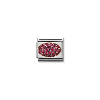 Kuvitus: pullean ovaalin muotoon istutetut fuksian väriset zirkonit