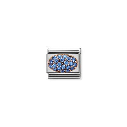 Kuvitus: pullean ovaalin muotoon istutetut vaalean sinisen väriset zirkonit