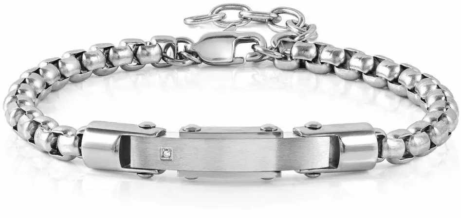 Nomination Strong sarjan miehekäs rannekoru jota koristaa kirkkaana säihkyvä timantti.