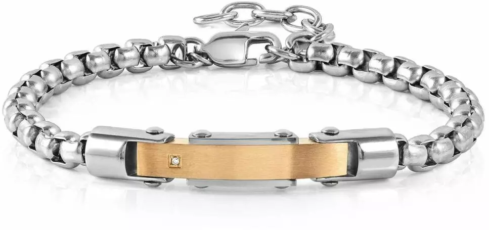 Nomination Strong sarjan miehekäs rannekoru jota koristaa kirkkaana säihkyvä timantti.