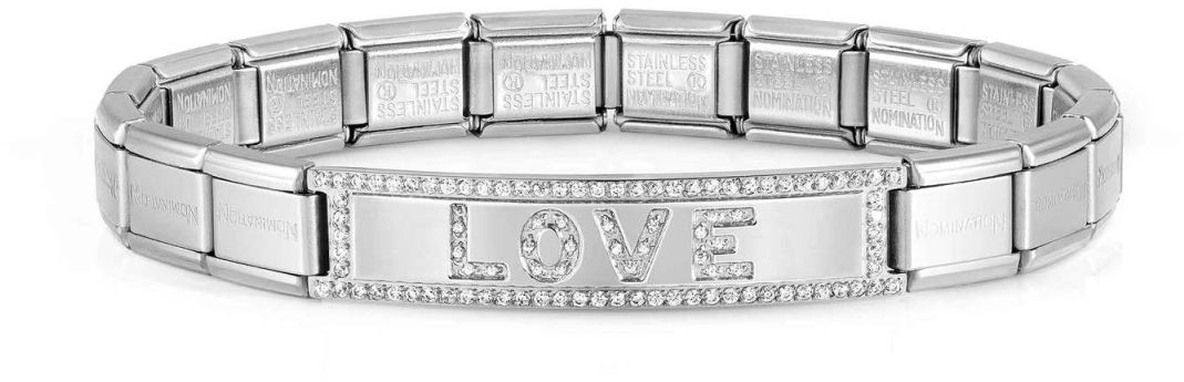 Sitä kuuluisaa asennetta huokuva Nomination Trendsetter rannekoru, jonka zirkoneilla reunustetussa laatassa säihkyy teksti LOVE.