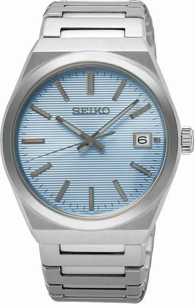 Seiko SUR599P1 erottuu muista kelloista vaaleansinisen kellotaulunsa ansiosta, joka heijastaa valoa kauniisti ja luo tyylikkään kontrastin hopeanvärisiin yksityiskohtiin. Se sopii täydellisesti niille, jotka etsivät klassista Seiko-kelloa vaaleansinisellä taululla, yhdistäen hienostuneen ulkonäön ja Seikon perinteisen laadun.