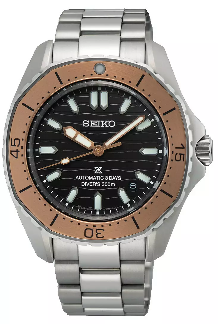 Seikon valmistama Prospex malli, erityisesti tehty sukeltajia ajatellen. Vedenkestävyys jopa 30 ATM asti, soveltuu täten loistavasti syväsukellukseen. Automaattikello, jossa pitkä 72 tunnin käyntivara. Merenrantaa muistuttava kellotaulu korostaa kellon kauneutta. Lumibrite pinnoite tekee kellon luettavaksi myös pimeässä. Päivyri löytyy tässä mallissa kello neljän ja viiden välistä.