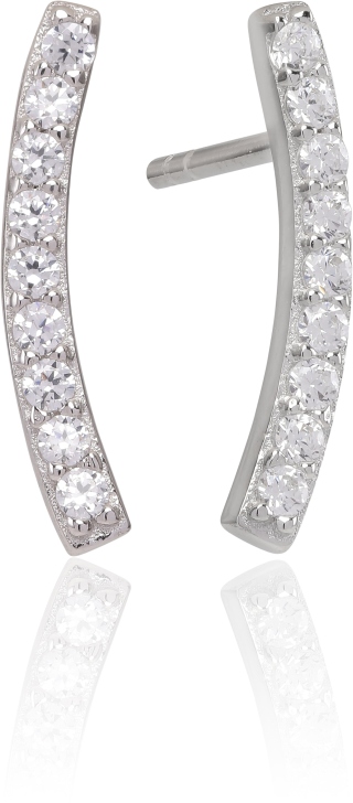 Kauniit zirkonkorvakorut tappikiinnityksellä. Hopeiset korvakorut on rodinoitu ja kooltaan ne ovat noin 1x15mm.